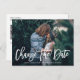 Vitt foto med handritad ändra datum-text meddelande vykort
