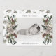 Det här är en vacker vattenfärgsmålad andedräkt för ett helgdag-fotokort med en kalkbräda och snöliknande beröring. En kalkbräda ram är förskönad med helgdag botaniska blommor inslag och placerad för att skapa ett unikt ram för ditt foto. Holiday z18