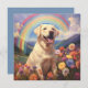 Ett personligt vitt eller gult Lab-minnes-kondoleanskort med en vacker målning av en glad gul Labrador på en himmelsk kulle med en vacker regnbåge ovanför. Symboliserar att Labradorn har passerat regnbågsbron till hundhimlen. Du kan anpassa det med din egen hunds namn eller annan text på baksidan av kortet. Gör en speciell minnes- eller kondoleansgåva till alla Lab-hundälskare om deras kära hund har gått bort.
