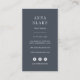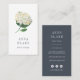 affärskorten för lodrät av elegant för florister, blommigtar, bröllopsfixararna eller andra professioneller i bröllop har en vattenfärgsillustration för vattenfärgsbrandangea-blommar i grönt och vitt, med ditt namn eller ditt företags namn under. Lägg till kontaktuppgifterna för fullt på motsatt sida i vitt på en kontrasterande rökfri blå bakgrund. Innehåller tre medieikoner i social och en mall fält för medieferensen i social.