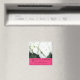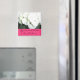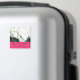 din speciella dag med denna elegant, vit hydrangea med mörk grönt foliage. Ett gräns i shock rosa med lite vit polka dots accentuerar namn och datum. Anpassa efter behov.