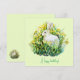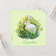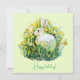 Liten vit kanin. Sött litet kaninbarn, njuter av blommorna och den soliga dagen på ängen, jag målade originalet med akvarell. Grattis på födelsedagen!