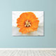 Det här kanvastrycket i fantastisk har ett vackert närliggande foto av blomman av en vit Daffodil. Fotot togs med makrofotografi, vilket ledde till en underbart detaljerad bild av de vita petalerna med den vackra orangen trumpet inuti.