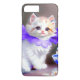 Vitt katt med Lila Flower Collar-färg Case-Mate iPhone Skal
