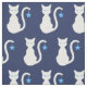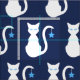 En silhuettetisk tecknad av en vit katt med ljusblå ögon mot marinen (färg kan ändras). En blå stjärna hänger från kattens svan.