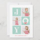 När du inte bara kan välja ett är det här multifotokortet perfekt för att visa bilder av hela helgdag! Fyrkantfotoformatet rymmer även ögonblicksbilder. Den här roligten och den moderna designen har ett enkelt budskap om glädje med snövit andedräkt på brickor i grönten. I baksidan finns mönster och utrymme med bred rand för att lägga till ett personligt meddelande eller ytterligare foton.