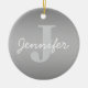 Vitt kursivt och Grått-monogram | Redigerbar Färg Julgransprydnad Keramik