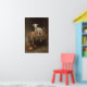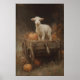 Vitt lamm på trävagn med pumpor, gotisk bondgårdsdjur oljemålning utskrivbar mörk cottagecore skörd Halloween höst väggdekor 180