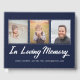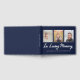 Minnesgäst bok i marinblått tryckt med tre foton av ditt älskade. Anpassa genom att skriva namn och leva i åratal. I det kärleksfulla minnet skrivs i ett snyggt vitt teckensnitt.