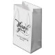En personlig giftpåse som värmer dina bröllopsgästers hjärtan! Denna minimalistiska vita påse pryds av parets namn och bröllopsdatum i en elegant skrivstil.