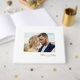 Vita, moderna, enkla skript Fotobröllopsgästboken har en elfenbensbakgrund med klassiskt elegant skript.
