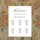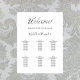 En klassisk vit bakgrund. Anpassa och lägg till namn i bruden och brudgummen, lägg till dina gäster namn. Svart text.