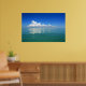 Poster av en relaxerande scenmålning av ett flytande vitt moln i ett klart blå himmel som reflekteras i ett lugn turkoshav.