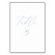 Ange tonen för din elegant vid havsbottnen firande med detta minimalistiska bordsnummer-kort från insamlingen av Chic vid kusten. Med ett mjukt blått skript i damm på en ren vit bakgrund ger det dig en enkel sofistikering av matbordet i bröllop. Perfekt för badplatser i strand, kustplatser eller andra evenemang med raffinerat, mjölkestetiskt material. Designat för att koordinera med "Genna" bröllopsinbjudan kan du visa samlingslänken på den här sidan för att se alla matchande objekt i den här vackra designen. ・ ・ Mockups för denna utformning skapades med Midjourney AI.