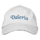 Hennes namn broderade i blå snyggt typografi på ett helt anpassade vitt basebolllock. Visar det redigerbara namn, Valeria. Använda Verktyg till Design om du vill ändra texten färg, stil, storlek osv. Övrigt färg och stilar tillgängligt. Designad 369MittNamn.