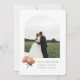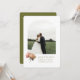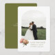 Modern och chic. Det här vackra bröllop spara datum-kortet har en vacker bukett av voluptuöst ro mot vit och oliv grönt bakgrund. Utformningen innehåller ett foto i boho arch ram, contemporaryn typsnitt i oliv grönt längst fram och ytterligare valfri text längst bak.