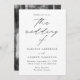 Minimalistisk, modern bröllopsinbjudan med dina bröllop-detaljer i ett vanligt svart brev med "bröllop av" i ett kalligrafiskt skript för elegant. Den vita bakgrunden har subtila svarta fläckar för en unik bröllopsinbjudan. Inbjudan går tillbaka till visningen av förlovningen lodrät. Designad att samordna med vår moderna elegance bröllop-samling.