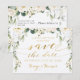 Vita peonior och silvergrönska rustika bröllops inbjudan postkort.