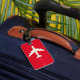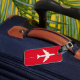 En enkel design med en bild av ett vitt flygplan på rött (anpassningsbar färg) för att identifiera dina tillhörigheter