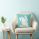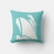 del av havsdekoren, vitt skepp på turkosblå kudde på ena sidan och turkosa och vita ränder på baksidan