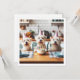 En rolig och söt illustration av den vita skräcken med en födelsedagskalas och med party hattar. Det här är perfekten för älskare och små hundälskare. Kortet kan redigeras helt och personlig efter dina behov.