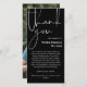 Tack för att du fick ett minnesmärke med ett foto av din älskade på baksidan. På omslaget, under Tacken skriven i ett handskript, lägger du till det tack du skriver i vitt mot svart bakgrund.