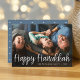Elegant och festive Hanukkah-fotokort har "Lycklig Hanukkah" i handskrivet stil-avslappnad, vit manustypografi. Anpassa med din familj namn och året vid grund.