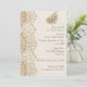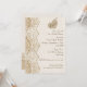 Vitt spetsar och hjärta av papp med initialer på bröllopsbröllopsfest-inbjudan i jutetyg med vitt spetsar på linne naturligt jutetyg eller säckväv och ett hjärta gjort av papp med initialer. Text i brunt. Observera att spetsar, papp och jutetyg alla är "tryckta på" och inte riktiga material. Denna eleganta, shabby chic sofistikerade och romantiska design med en rustik essens är en del av en brölloppsuppsättning och är perfekt för ett country chic eller västerländskt vår-, sommar- eller höstbröllop med en neutral färgpalett.