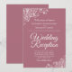 Dessa vackra bröllopsinbjudningar till efterfesten är designade för gäster som är inbjudna till mottagningen men inte till ceremonin, de har en vacker dammig rosafärgad eller mauve rosa bakgrund med utsmyckad vit falsk spets i hörnen. Typografin inkluderar fin skrivstil för en stil som är både enkel och elegant. Enkla, eleganta och stilrena, dessa inbjudningar är ett underbart sätt att be dina vänner och familj dela din glädje på din speciella dag.