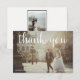 Tack vare detta kort i bröllop kan ni på ett underbart sätt låta era vänner och familj få veta hur mycket ni uppskattar dem. Kortets framsida är designad för att visa ditt favoritorienteringsfoto för vågrät, med ord "tack" överst i en söt, vit övertäckningsskripttyp och ditt namn, bröllop datum och plats vid grund. På baksidan av kortet kan du skriva in ett eget hälsning och det har även ett svartvitt inramat lodrät/porträtt orienterat foto. Det här är en malldesign och det är mycket enkelt att anpassa den efter dina behov i kostym. CREATOR'S NOTE: "Vellum overlay" på den här produkten är en digital effekt." Kontaktdesigner för matchande produkter. Copyright Anastasia Surridge for Anastasia Designs, alla höger förbehållna.