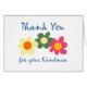 "Tack för din Kindness" skrivs ut i ett cyanblått teckensnitt med tre färgstarka blommor. Klicka på "Anpassa" om du vill ändra den vita bakgrunden färg, om du vill.
