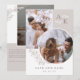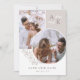 Dubbel sidig save the date-kort i vitt och taupe med era initialer, överlappande bilder och grönska med rena eleganta typsnitt. Foto save the date-kort med modern design anpassad med er monogram och bilder, två på ena sidan och en på den andra.