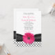 Texten på denna stilrena svarta och vita prickiga rosa gerbera tusenskönas bröllopsinbjudan är helt anpassningsbar. För att ändra den, använd alternativet anpassa. För mer omfattande textändringar (teckensnitt, teckensnittsfärg, teckensnittsstorlek, textplacering), använd alternativet anpassa den. Även om denna prickiga och rosa gerbera tusensköna blommig inbjudan för närvarande är anpassad för ett bröllop, kan den också användas för andra speciella tillfällen. Verkligen är det upp till dig. Allt du behöver göra är att ändra texten. Designen påminner om de förgångna dagarna på 50-talet (1950-talet, femtiotalet). OBS: Detta är en platt tryckt design utan några upphöjda eller 3D-dekorationer