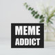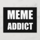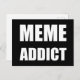 Känner du till människor som tvångsmässigt surfar på Internet för att hitta memes, memes och fler membran? Du kanske känner folk som skapar dem? Eller skapar du dem? Berätta för världen om detta beroende! Det här vykortet har en svart bakgrund med vit text som lyder "Meme Addict". Ta några av dem i dag!
