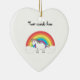 Vitunicorn på regnbågen och moln julgransprydnad keramik