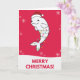 Vitvalen på julafton med julbelysning. Roliga djur med presenter och snö för högtiderna. Även roligt för jul i juli. Vitvalar är söta djur och perfekta för jul.