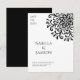 Fira din speciella dag med en smula elegans och sofistikering med vår unika och designade bröllopsinbjudan. Med en pristinvit bakgrund som är försedd med ett maskerande svart roterande symmetri mönster i svasser och punkter skapar upp ett flodhaltigt mönster, fångar denna inbjudan på ett vackert sätt det väsentliga i tidlös romantik och modern charm. Denna inbjudan är perfekt för par att hitta en blandning av contemporary och klassiskt elegans, som anger tonen för ett bröllop som kommer att bli ihågkommet för dess skönhet och ära. Ordna er i dag och se till att ert uttalande från bröllop verkligen blir oförglömligt!
