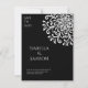 Fira din speciella dag med en smula elegans och sofistikering med vår unika och designade bröllopsinbjudan. Med en svart bakgrund som är försedd med en mätare vit roterande symmetri mönster i dekorationer och prickar skapar upp ett blomster mönster, fångar denna inbjudan på ett vackert sätt det väsentliga i tidlös romantik och modern charm. Denna inbjudan är perfekt för par att hitta en blandning av contemporary och klassiskt elegans, som anger tonen för ett bröllop som kommer att bli ihågkommet för dess skönhet och ära. Ordna er i dag och se till att ert uttalande från bröllop verkligen blir oförglömligt!