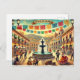 Här är ett annat vykort för vattenfärg-stil-vintage resor för Cinco de Mayo, med en mexikansk plaza med fontän, papel picado-banderoller och musiker som spelar gitarrer och trumpeter. 🎉 🇲 ✨ Utformningen har mjuka, flytande vattenfärgstreck med handmålad typografi med texten "Viva Cinco de Mayo!".