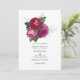 Trendig färg under 2023 års bröllopsinbjudan till magentans blommigt med rosans accenter. Perfekt för varje tema eller trädgårdsbröllop. QR-koden på andra sidan går till din bröllop-webbplats där människor kan lära sig mer och osa.