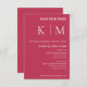 Viva Magenta och White-Monogram-Bryllop- Spara Datumet