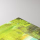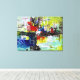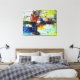 Vibrant and chaotic, the abstract composition bursts with vivid colors like blue, red, yellow, and green. Geometric shapes and overlapping brushstrokes create an energetic and dynamic scene.
