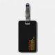 Den här bagagetaggen innehåller röd och svart text i hela gulten ansikte. Baksidan är svart med röd text och gult och rymmer fyra linjer kontaktinformation. Utformningen är tänkt att vara enkel, men öga ska fånga.