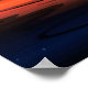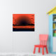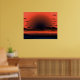 Denna moderna konsthälsbild visar en levande röd solnedgång över stranden med fåglar som flyger förbi. Mörkens moln sopar försiktigt himlar. En olycksbådande strandscen.