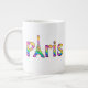 En utformning som är lika roligt som Paris självt. Texten Paris i en levande arena av en regnbåge i färg med "A" i Paris och en översikt över Eiffel Torn.
