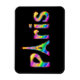 En utformning som är lika roligt som Paris självt. Texten Paris i en levande arena av en regnbåge i färg med "A" i Paris och en översikt över Eiffel Torn.