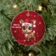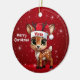 Vixen! Celebrate the holiday season with this festive round ceramic red ornament featuring an endearing woodland forest animal cartoon graphic of a cute baby reindeer wearing a Santa hat, and Merry Christmas written in white. Perfect deer with antlers for decorating your tree or as a thoughtful gift, this whimsical doe decor makes a cherished keepsake for years to come. Customize by changing the text, the font, the font color, or remove the text. You can even transfer this design onto other products. Enjoy this design your way! Check out ForestBabies Xmas Deer Collection for matching decorations. 🎄🩌 Dimensions: Diameter: 2.87". Thickness: 0.156". Weight: 1.4 oz. Made of white porcelain. Full-color, full-bleed printing. Printing on both sides. Thread does not come attached/tied.