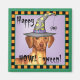 Lycklig Howl-oween! Ta tag i eller behandla roligt med den här söta Vizsla som bär en häxhatt som dekorerats med en fånig spindel. Underbar för barn av alla åldrar som kärlek Vizslas och Halloween.