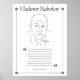 En inspirationskälla för författare i perfekten. Denna poster illustrerar Vladimir Nabokov i en originalpenna och bläck, och citerar: "Eftersom hela den här strukturen, som är svagt belyst i sitt sinne, kan jämföras med en målning, och eftersom du inte behöver arbeta?gradvis från lämnat till höger för att den ska uppfattas på rätt sätt, kan jag rikta in mitt blixtljus på vilken del eller del av bild som helst när jag skriver ned det?. Jag börjar inte med min roman i början. Jag kommer inte fram till kapitel tre innan jag når kapitel fyra, jag går inte plikttroget från en sida till nästa, i följd. Nej, jag plockor ut lite här och lite där, tills jag har fyllt alla luckor på papper. Vladimir Nabokov, starka åsikter..