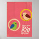 Voar para Rio, Brasil (Fly to Rio, Brasilien) vintage resor poster. Retro Tropical Birds reseaffisch till Brasiliens nationer. Brasiliansk flygning poster.